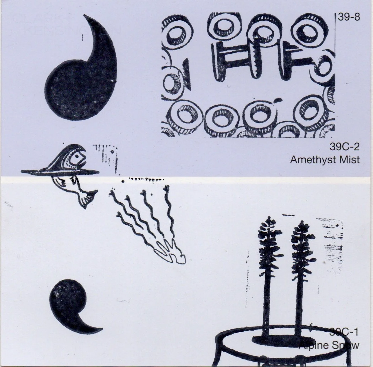 Blue Truck - Icy Pond, stamps on paint sample, 4" x 4", 2025